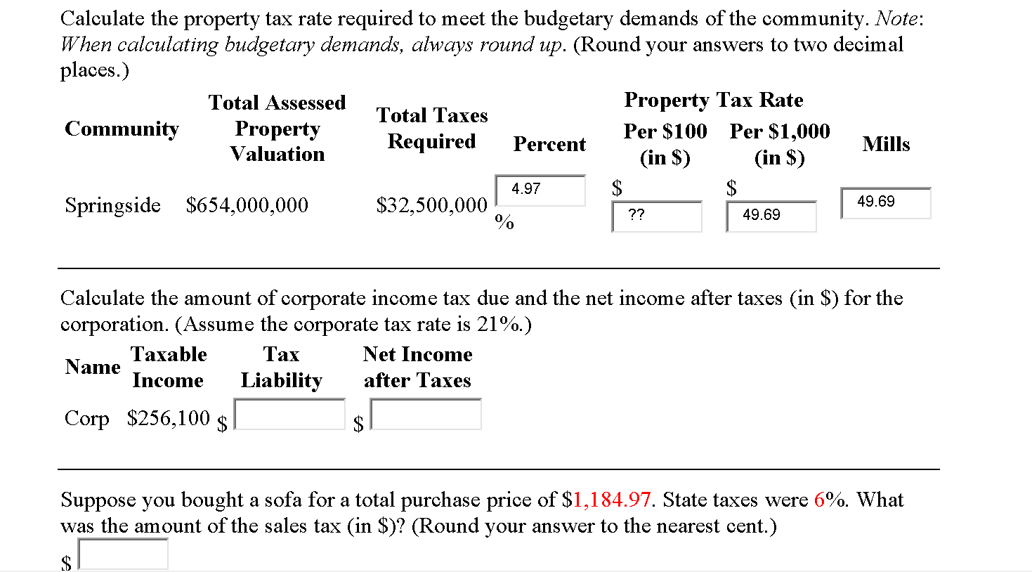 Calculate the property tax rate required to meet the